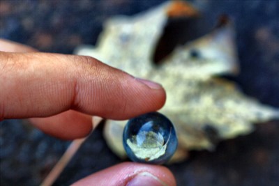 Una semplice biglia di vetro fa da filtro tra la macchina fotografica e il paesaggio