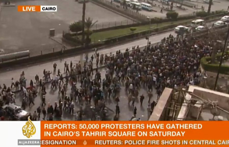 12:27 – Le telecamere di Al Jazeera al Cairo stanno inquadrando la formazione di nuovi cortei che si dirigono verso piazza Tahrir, dove si stima possano arrivare a breve 50mila persone.