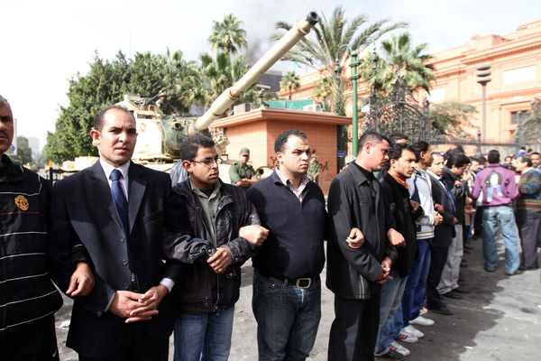 13:22 – Il Museo Egizio del Cairo è sguarnito, ma viene protetto da un cordone di manifestanti per evitare che venga saccheggiato, dice Al Jazeera.