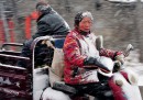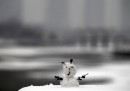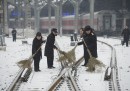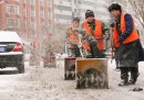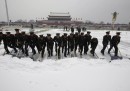 A Pechino è caduta la prima neve dell'inverno: c'è chi la spala e chi ci gioca
