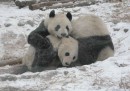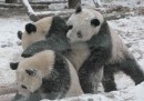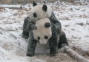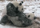 Nel frattempo la neve copre tutto e va spalata, ma i bambini ci giocano. E anche i panda.