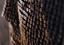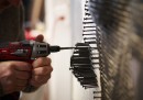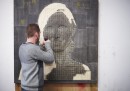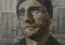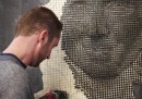 Andrew Myers è uno scultore californiano e i suoi lavori sono un esempio, oltre che di grande inventiva artistica, di pazienza e dedizione. Dopo aver disegnato il viso della persona ritratta sul pannello di legno che userà come base, realizza uno per uno tutti i diecimila fori necessari ad ospitare le viti, che procede poi a inserire a diverse profondità per dare l’effetto tridimensionale al ritratto.