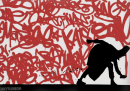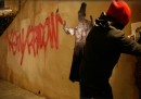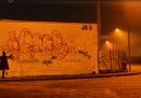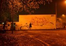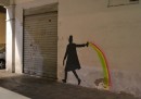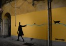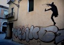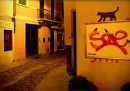 Kenny Random, street artist di Padova, ha disegnato questi omini eleganti che si divertono a interagire con i graffiti già presenti sui muri della città, seguiti da circospetti gatti neri.