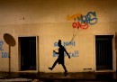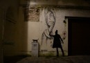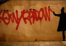 Omini eleganti si divertono a interagire con i graffiti già presenti sui muri della città
