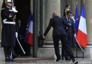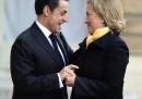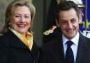 Oggi Hillary Clinton è arrivata a Parigi per il G8 straordinario sulla situazione giapponese ed è stata accolta dal presidente Nicolas Sarkozy all’Eliseo: le foto dell’incontro tra i due sembrano quelle di una coppia separata che si ritrova con la scusa di un congresso, e non possono essere guardate senza la colonna sonora adeguata (cliccate sul tasto play e sulla foto grande per aprire le immagini in un’altra finestra).