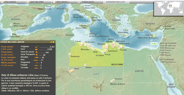 14,30 – Il Corriere della Sera ha un bel grafico interattivo con un sacco di informazioni sulle basi militari nel Mediterraneo e gli obiettivi colpiti in Libia.