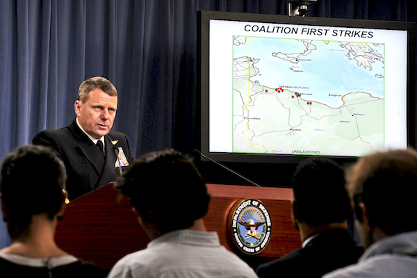 “Al contrario di Gheddafi, le forze internazionali non stanno attaccando i civili. La risoluzione delle Nazioni Unite autorizza tutte le misure necessarie alla protezione del popolo libico. Per instaurare una no-fly zone in sicurezza, è necessario portare avanti operazioni mirate contro la difesa aerea dell’esercito libico. Tutte le missioni sono pianificate meticolosamente, prendendo in considerazione tutte le misure possibili per evitare vittime civili. Continueremo a lavorare con i nostri partner arabi per rafforzare la risoluzione dell’ONU, per il bene del popolo libico”