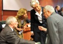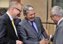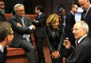 Eppure, quando sono tra loro, i ministri delle economie europee mostrano un’intimità che abbandona ogni formalismo istituzionale e trasforma le frequenti riunioni in giro per il continente in rimpatriate del liceo, di cui noi estranei possiamo solo percepire – nei gesti affettuosi, nei sorrisi dolci, nella conversazione complice – un qualcosa che noi non sappiamo, una passione, un’esperienza condivisa, un’isola, una colonna sonora che li guida e li tiene vicini. Sono ministri dell’Economia. (Cliccate sul tasto play e sulla foto grande per aprire le immagini in un’altra finestra.)