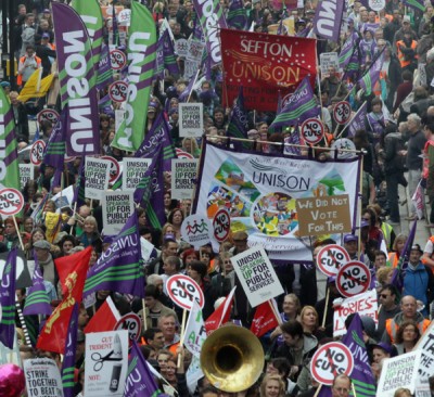 Oltre trecentomila persone contro i tagli alla spesa pubblica decisi dal governo Cameron