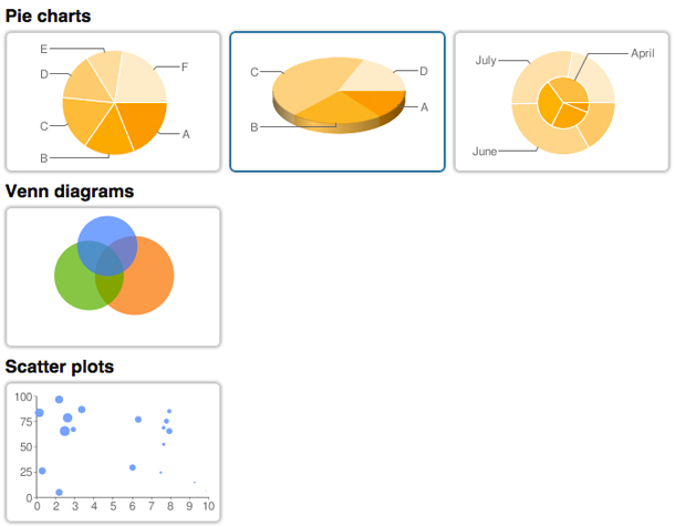 Ci sono i grafici a barre, a torta, a matrice, a bolle, le nuvole di parole, le mappe e altri diagrammi