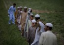 Da lunedì, mano mano che il resto del mondo veniva a conoscenza di un posto che si chiama Abbottabad, nel nord del Pakistan, gli abitanti di Abbottabad venivano a sapere di essere finiti al centro del mondo e di avere avuto un famigerato vicino che viveva in una grigia e triste palazzina circondata da muri e recinzioni. L’edificio in cui si nascondeva Osama bin Laden è così rapidamente diventato un’icona architettonica esteticamente del tutto inadeguata alla sua fama: fama che però è cresciuta rapidamente, e così insieme ai fotografi arrivati immediatamente sul posto sono arrivati anche un sacco di curiosi, visitatori e semplici passanti, improvvisamente divenuti soggetti interessanti per i suddetti fotografi che altrimenti non avrebbero saputo cosa fare dopo la prima mezz’ora. La casa è infatti guardata dagli agenti pakistani, ma intorno circola da due giorni un gran movimento umano – coppie, famiglie, cercatori di ricordi, seminaristi, venditori di merende, bambini che vanno a scuola, gruppi di omarìni in versione pakistana – raccontato in queste belle immagini scattate da diversi fotografi.