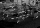 Justin Kington, noto su Flickr con lo pseudonimo just big feet, ha fotografato la maratona di Londra ogni anno negli ultimi tre anni. Non ama la postproduzione, e ha realizzato questi scatti impostando un tempo di esposizione elevato e la modalità bianco e nero interna alla macchina fotografica: è possibile così apprezzare il puro movimento, che si esprime in queste scie di fantasmi in corsa.