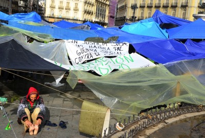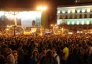 Un'altra notte di occupazione della piazza a Madrid, malgrado la pioggia e i divieti