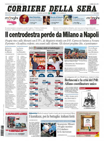 Ci sono tre grandi tendenze nelle titolazioni di oggi sui quotidiani italiani: una che segnala la vittoria del centrosinistra e la sconfitta di Silvio Berlusconi nelle elezioni di domenica. E un’altra che segnala entusiasta la vittoria del centrosinistra e la sconfitta di Silvio Berlusconi nelle elezioni di domenica. Poi ci sono i giornali del centrodestra che non si fanno sconti, e segnalano la vittoria del centrosinistra e la sconfitta di Silvio Berlusconi nelle elezioni di domenica.