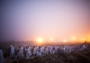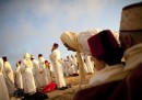 Domenica molti samaritani si sono recati in pellegrinaggio sul Monte Garizim, vicino a Nablus in Cisgiordania, per festeggiare lo Shavuot, una delle più importanti festività della religione ebraica. Lo Shavuot celebra il giorno in cui Dio consegnò la Torah a Mosé sul Monte Sinai, e come la Pentecoste dei cristiani viene calcolato 50 giorni dopo la Pasqua. È chiamato anche Festa delle Settimane o della Mietitura, perché nell’antichità i fedeli si recavano in pellegrinaggio al tempio di Gerusalemme e offrivano a Dio i primi frutti del raccolto e i primi animali nati nel gregge. La notte di Shavuot viene trascorsa leggendo passi della Torah, in particolare il libro di Ruth. Molte comunità preparano per l’occasione cibi a base di latticini e decorano le loro case con fiori e rami di palme.