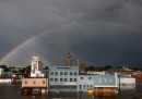 Case sommerse, binari che finiscono in acqua ma anche un arcobaleno e un violoncello