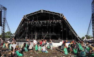 Circa 1.300 volontari sono già al lavoro per raccogliere i rifiuti e per separare il materiale riciclabile dal resto. Negli ultimi anni gli organizzatori del Festival si sono dati da fare per ridurre l’impatto ambientale dell’evento: piatti, posate, bicchieri e sacchetti sono in materiale riciclabile e ne viene organizzata la raccolta. L’anno scorso circa il 60 per cento dei rifiuti è stato riciclato. I bar, il teatro e le docce del Festival ricevono energia da pannelli solari. Gli organizzatori devolvono parte degli introiti a Greenpeace e dal 2000 a oggi hanno piantato diecimila alberi.