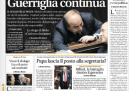 La Stampa apre con le proposte nuove tasse sulle auto più potenti e sulle banche, Liberazione apre criticando molto l’accordo tra CGIL e Confindustria. Il Corriere punta invece sulla sconfitta della maggioranza alla Camera, ricordando però che ne sono responsabili i “molti assenti”: nessun calo strutturale, diciamo. I quotidiani di centrodestra decidono di non affrontare la questione, vedi Libero e il Giornale, oppure di prenderla da un punto di vista singolare, come fa il Secolo: la colpa è dell’opposizione, che non ha votato con la maggioranza perché vuole vedere affondare il Paese.