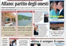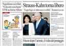 Ci sono due storie che dominano le prime pagine di oggi. La prima è quella relativa a Dominique Strauss-Kahn e alle sorprendenti evoluzioni della sua situazione giudiziaria. La seconda è quella relativa ad Angelino Alfano e la sua nomina o elezione – “incoronazione”, scrive qualcuno – a segretario politico del PdL. Della seconda si occupano soprattutto i quotidiani politici. Il Corriere della Sera però apre con una notizia sulle pensioni e su una “stretta” inserita nella Finanziaria. Il Fatto fa una ricostruzione – un po’ dietrologica, ma vediamo – sul perché Telecom ha interrotto le trattative con Michele Santoro.