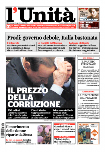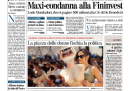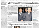 Le aperture delle prime pagine di domenica sono infine unanimi (anche se con letture diverse) sulla notizia del giorno: la condanna di Fininvest sulla questione Lodo Mondadori, che diventa notizia principale persino su diversi quotidiani locali.