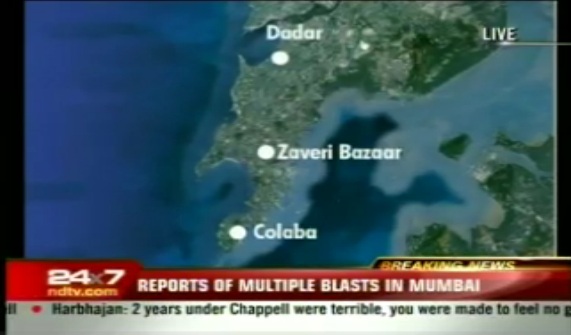 A Mumbai ci sono state tre forti esplosioni in altrettante aree molto affollate della città. Le notizie al momento sono ancora parziali, ma si parla di almeno otto morti e almeno 70 feriti. Il ministro dell’Interno indiano ha detto che probabilmente si è trattato di un attentato terroristico. Le esplosioni si sono verificate: una nella zona dell’Opera House, nell’area sud della città, una nei pressi del tempio Dadar e una terza nell’affollato mercato di gioielli e oggetti preziosi Zaveri Bazaar sempre nella zona meridionale di Mumbai.