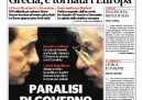 Con più o meno originalità la prima notizia è la Grecia, poi Napolitano: e Libero e Manifesto sono d'accordo su una cosa