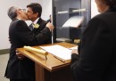 Il 24 giugno scorso il governatore di New York, Andrew Cuomo, ha firmato la legge votata dal Senato dello Stato per rendere legali i matrimoni tra persone dello stesso sesso. Ieri la legge è entrata ufficialmente in vigore e centinaia di coppie omosessuali si sono riunite negli uffici municipali delle loro città per celebrare il loro matrimonio, diventando sposate a tutti gli effetti.