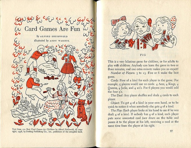 Alla fine degli anni Cinquanta Andy Warhol lavorò ad alcuni disegni che furono pubblicati all’interno di una serie di libri per bambini, “Best of Children Books“. Il suo stile era ancora molto lontano da quello che poi lo avrebbe reso famoso in tutto il mondo, ma questi disegni sono di fatto gli unici rimasti accessibili per chi non voglia spendere migliaia di dollari per comprare una sua opera. Si trovano su eBay a poche centinaia di dollari, segnala Maria Popova sull’Atlantic.