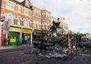 Malgrado gli scontri e gli attacchi contro la polizia si siano esauriti nel corso della notte, ancora alcune ore dopo l’alba la zona di Tottenham e anche alcune vicine (qui una mappa su Google) stavano subendo saccheggi e scassi, riferiscono i siti inglesi di news e gli utenti di Twitter. Molti dei saccheggiatori avevano il passamontagna, altri portavano carrelli della spesa, altri hanno costruito barricate per bloccare il passaggio delle automobili sulle strade.