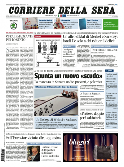 Il nuovo scudo fiscale e "il pugno Merkel-Sarkozy" aprono i quotidiani