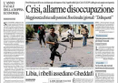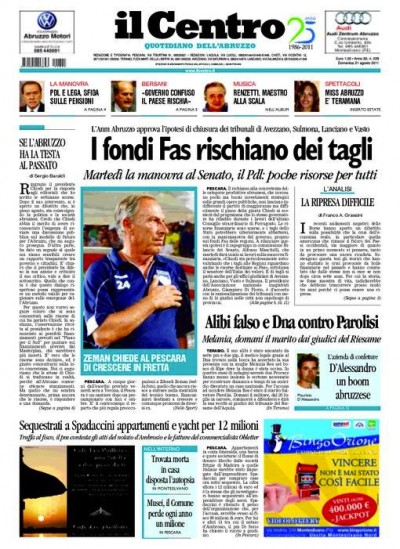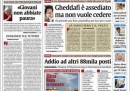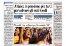 Lo dicevamo ieri, che questo dibattito sulla manovra – su una manovra già varata, verifichiamo – è una specie di ottovolante in cui nel centrodestra ognuno dice la sua e niente pare deciso e definito, salvo poi lamentarsi della mancata fiducia dei mercati. Oggi è il turno di Angelino Alfano, segretario politico del PdL, che intervistato dalla Stampa propone una riforma delle pensioni. Libero denuncia l’esistenza di un’altra casta (la Banca d’Italia) mentre un’occhiata ai giornali locali aiuta a comprendere le dimensioni delle preoccupazioni per i tagli contenuti nella manovra.