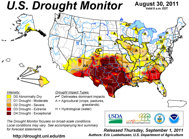 Molte aree del Texas sono interessate da settimane da una forte siccità, che negli ultimi giorni ha portato a numerosi incendi di grandi dimensioni. Si stima che almeno mille abitazioni siano state distrutte dalle fiamme originate da 180 diversi incendi, che si sono diffusi rapidamente a causa dei venti molto intensi portati dalla tempesta tropicale Lee, che non ha però riversato nemmeno una goccia d’acqua sui terreni inariditi dello Stato.