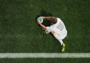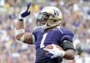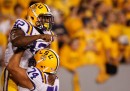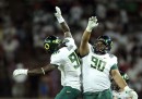 Nella selezione delle migliori foto sportive della settimana ci sono molte palle ovali, quelle di rugby dei mondiali di Nuova Zelanda, che proseguono, e quelle di football americano dei campionati universitari americani. C’è del calcio, con Messi sotto la pioggia e lo sguardo di Cavani (si concentra? prega?). E c’è persino del badminton.