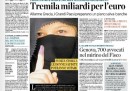 Una rotonda cifra di 3000 miliardi si aggira tra i titoli maggiori dei quotidiani, stamattina: sarebbe la cifra in ballo nel piano di aiuto al sistema dell’euro allo studio da parte dei paesi del G20. Si contende lo spazio delle prime pagine con l’ennesima ripetizione del rifiuto di Silvio Berlusconi di dimettersi (una notizia, diceva un vecchio cliché, è “uomo morde cane”, non il contrario) e con i risultati della domenica calcistica. Gli spazi fotografici sono per le donne dell’Arabia Saudita, che sembrano guadagnare più diritti, e per il nuovo arcivescovo di Milano Scola.