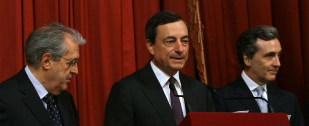 Da sinistra: Fabrizio Saccomanni, Mario Draghi, Vittorio Grilli