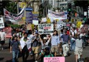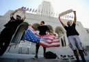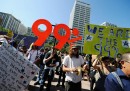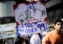 Avevamo scritto pochi giorni fa, e lo abbiamo ripetuto nel weekend parlandone alla Festa di Internazionale a Ferrara, che tra le sue molte fragilità e confusioni il piccolo movimento chiamato Occupy Wall Street, che manifestava occupando un’area di Manhattan vicino alla Borsa di New York, aveva un punto di forza: la pazienza. L’idea di non puntare a ottenere visibilità mediatica immediata, o quanto meno di essere disposti ad aspettare e portare avanti la proposta a oltranza. Col passare dei giorni sembra che questa strategia – probabilmente scelta più per necessità, dato l’esiguo numero dei primi manifestanti – si stia rivelando sensata: le dimensioni delle proteste degli ultimi giorni sono andate sempre crescendo e da qualche giorno si ha notizia del diffondersi di simili manifestazioni in altre città americane. A Los Angeles, ieri, un corteo di due-trecento persone persone ha sfilato fino al municipio (a Los Angeles manca un vero e proprio distretto finanziario), dove un piccolo gruppo ha allestito un campeggio temporaneo su modello di quello di Zuccotti Park a New York. Altre manifestazioni si sono tenute a San Francisco, a Boston, ad Albuquerque, a Denver, a Chicago.