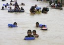 Le foto delle città lasciate sott'acqua dal tifone, che intanto si sposta verso il Vietnam lasciandosi alle spalle 18 morti