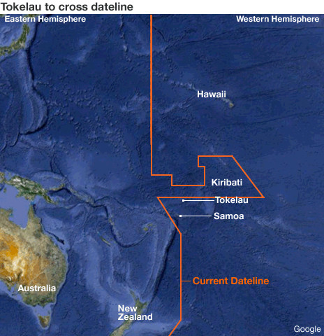 La decisione di cambiare data è stata assunta anche in conseguenza all’annuncio di Samoa dello scorso maggio di voler cancellare un giorno, allineandosi così al fuso orario dell’Australia e della Nuova Zelanda. «Samoa è la nostra unica via per poter comunicare con il resto del mondo, quindi pensiamo sia logico seguire la decisione che hanno assunto da quelle parti» ha spiegato il portavoce del governo, Jovillisi Suveinakama.