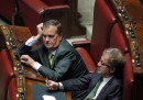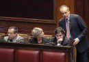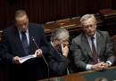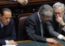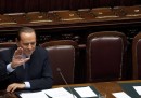 Oggi alla Camera il presidente del Consiglio, Silvio Berlusconi, ha rivolto un breve discorso programmatico chiedendo all’aula di rinnovare la fiducia nel Governo. La Camera era semivuota, dato che l’opposizione ha deciso di non partecipare al voto, e questo ha creato una situazione che oscillava tra il surreale e il tremendamente noioso. La stessa replica di Berlusconi è durata appena due minuti. Gli unici esponenti dell’opposizione presenti in aula erano cinque deputati radicali, in dissenso da quanto deciso dal gruppo del Partito Democratico. Le foto di oggi riflettono un po’ questo scenario: ci sono soprattutto ministri, molto intenti a parlare sottovoce e impegnati nel non fare troppi sbadigli.