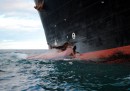 Un gruppo di tecnici è intervenuto in un’altra area della nave per sigillare la zona del vano motori. L’operazione dovrebbe evitare l’entrata di altra acqua a bordo che potrebbe condizionare la stabilità, già precaria, della Rena. L’imbarcazione è inclinata vistosamente su un lato e ha una profonda crepa nello scafo, che per ora non ha compromesso l’integrità della nave.