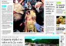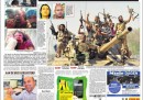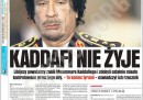 La caduta e la morte del più longevo dittatore al mondo è evento da titoli da nove colonne, e da giornali da collezione. In questo caso, poi, alla portata storica delle prime pagine si associa il dibattito sull’opportunità della pubblicazione delle foto di Gheddafi successive alla sua cattura e alla sua morte. Uno sguardo alle prime pagine dei giornali internazionali suggerisce una grande varietà di approcci, detto che la maggior parte dei giornali ha deciso di pubblicare le foto del cadavere di Gheddafi. Ci sono i giornali tedeschi che hanno ignorato del tutto le foto, preferendo soluzioni più originali ma anche più fredde. Ci sono i giornali britannici che le hanno pubblicate molto grosse e con titoli a effetto (si veda il Sun, per esempio, che però è un tabloid). Ci sono gli spagnoli che hanno relegato la morte di Gheddafi in secondo piano, aprendo con l’abbandono della lotta armata da parte dell’ETA (a parte il País, che ha significativamente dato lo stesso titolo sia all’ETA che alla morte di Gheddafi). Molti altri giornali hanno pubblicato le foto di Gheddafi catturato ma vivo, invece di quelle del suo cadavere. Il New York Post è l’unico che ci scherza su.