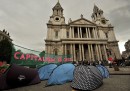 La protesta di Londra, ispirata a “Occupy Wall Street”, è iniziata sabato scorso a Paternoster Square, la piazza privata del quartiere finanziario di Londra, sede locale della Borsa. I proprietari della piazza, con un ordine del tribunale, hanno immediatamente ottenuto lo sgombero e la polizia ha bloccato l’accesso. I manifestanti, con circa duecento tende, hanno quindi ripiegato sul lato occidentale della cattedrale di St. Paul creando durante la settimana un campo sempre più stabile, con un tendone per il cibo e uno per i laboratori politici.