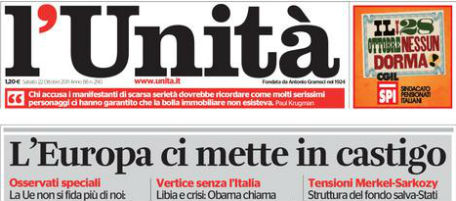 La maggior parte delle prime pagine apre con l’accordo alla Nato di concludere la missione in Libia entro il 31 ottobre ma la morte di Gheddafi crea ancora diversi problemi e incertezze: l’ONU vuole indagare sulla sua fine e i leader libici litigano sui modi e i tempi della sua sepoltura, mentre la popolazione ha fatto la fila ieri per vedere il cadavere. Il Secolo d’Italia si interroga sull’opportunità di pubblicare le foto del corpo senza vita del colonnello e la Padania si preoccupa (come al solito) del problema immigrazione.