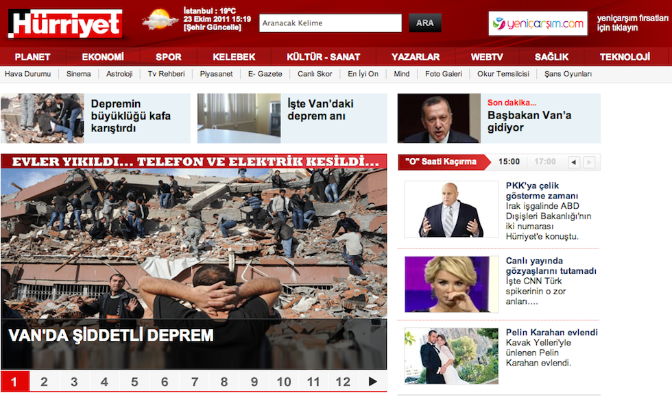 14.53 – Koray Peközkay, fotoreporter del quotidiano turco Hürriyet è sul luogo del terremoto e sta postando su Twitter le sue foto in tempo reale.