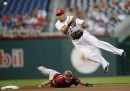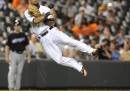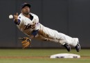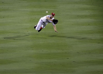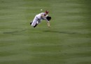 Nell’attesa, per appassionati e profani, abbiamo messo insieme un po’ di fotografie di momenti spettacolari di questo finale di stagione e di quelle passate, privilegiando soprattutto le “prese al volo” in tuffo o acrobazia dei giocatori in difesa, che ci sono state anche lunedì sera. Ce ne sono un sacco dei Minnesota Twins e soprattutto di Alexi Casilla, che evidentemente è uno che si tuffa un sacco.