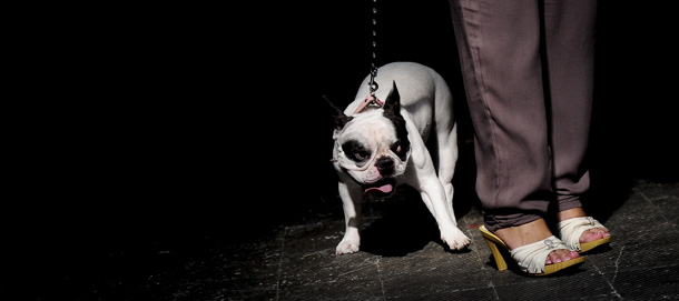 A dog and his owner parade during the Pet fair in Barcelona on October 1, 2011. AFP PHOTO/ JOSEP LAGO (Photo credit should read JOSEP LAGO/AFP/Getty Images)