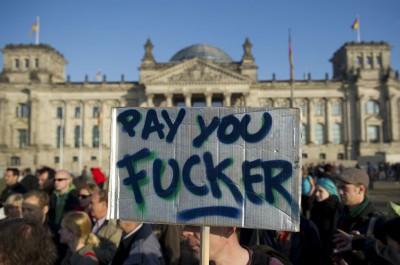 La scorsa settimana, in Germania la protesta si era allargata a decine di centri: oltre 5 mila persone davanti alla Bce, a Francoforte, avevano mostrato cartelli come “Noi siamo il 99 per cento” e “Occupy Germany”, mentre altre 1500 erano scese in strada a Berlino emulando le proteste “Occupy Wall Street” organizzate a New York e poi in tutti gli Stati Uniti contro le degenerazioni del capitalismo e la crisi del debito.