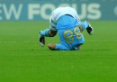 Che è un calciatore lo abbiamo detto. Gli altri due indizi sono che è tedesco e che è a fine carriera, e a questo punto chiunque abbia seguito un po’ il calcio europeo degli ultimi dieci anni lo avrà certamente riconosciuto. Insieme a lui, in questa selezione domenicale delle più belle foto sportive della settimana, ci sono altri calciatori, un po’ di tennis e football americano, e dell’acqua. Quella del triathlon di Brighton, quella del surf in California e quella in cui è tornato a immergersi Ian Thorpe, ex supercampione di nuoto appena tornato all’attività agonistica.