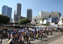 I manifestanti di Occupy Los Angeles tengono regolarmente manifestazioni nel centro della città dall’inizio del movimento, sette settimane fa. Il centro della protesta è un accampamento temporaneo, su modello di quello di Zuccotti Park a New York, che si trova vicino al municipio della città. Il sindaco di Los Angeles, Antonio Villaraigosa, ha detto che l’accampamento “non può continuare all’infinito”, citando in proposito preoccupazioni per l’igiene e la sicurezza. Rispetto a New York, dove i rapporti con la polizia sono spesso stati tesi, e alle proteste violente di Oakland, Occupy Los Angeles non ha avuto finora problemi particolari con le autorità e le forze dell’ordine. Ieri, però, il capo della polizia Andrew Smith ha dichiarato al Los Angeles Times che per la prima volta gli agenti hanno arrestato due persone nell’accampamento durante la giornata, per due casi di aggressione tra i partecipanti.