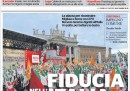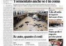 La maggior parte delle prime pagine di oggi propone ancora le immagini del disastro di Genova, interrogandosi sul perché la tragedia non sia stata evitata e aspettando la piena del fiume Po prevista per stanotte. Sul fronte politico, il PresdelCons non vuole dimettersi e il giorno della fiducia si avvicina: c’è chi, come Repubblica, conta ben 20 defezioni dalla maggioranza e chi definisce il governo tecnico “una rapina”. Libero pensa a ogni possibile alternativa alle urne e al governo tecnico, pur affermando che la maggioranza ormai non c’è. Si parla anche della manifestazione di ieri in piazza San Giovanni, del discorso di Bersani e dell’arrivo di Renzi (fischiato da qualcuno).